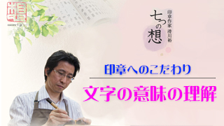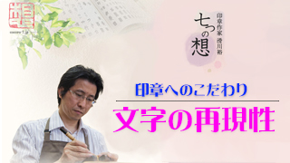 七つの想(こころ) 印章へのこだわり/文字の再現性 研鑽を積み、手彫りの技術を修得したからこそ、 魂のこもった美しい印章文字が構築できる。 たくさんの模刻から始まる、印章づくりの大切な基礎 印章の技術を覚えるやり方としては、まず、手本となる文字をまねること、つまりは再現性を追求する... 2025.09.30 七つの想(こころ)印章作家の実践