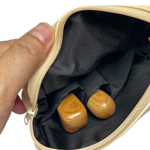 外側にはスリットがあり、捺印マットが入れられます。外側素材は合成皮革(ポリウレタン)製