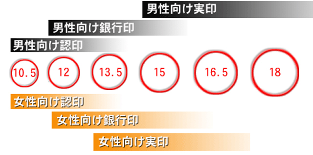 銀行印 :12ミリ、13.5ミリ、15ミリ