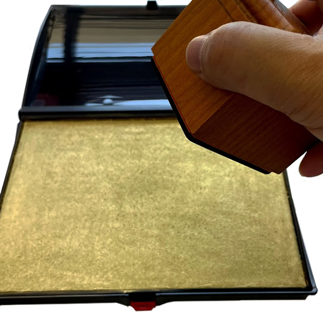 御朱印、記念スタンプで使用する、大きなゴム印に適したスタンプ台。大形の盤面サイズで、印面にインキをムラなく捺印できます。